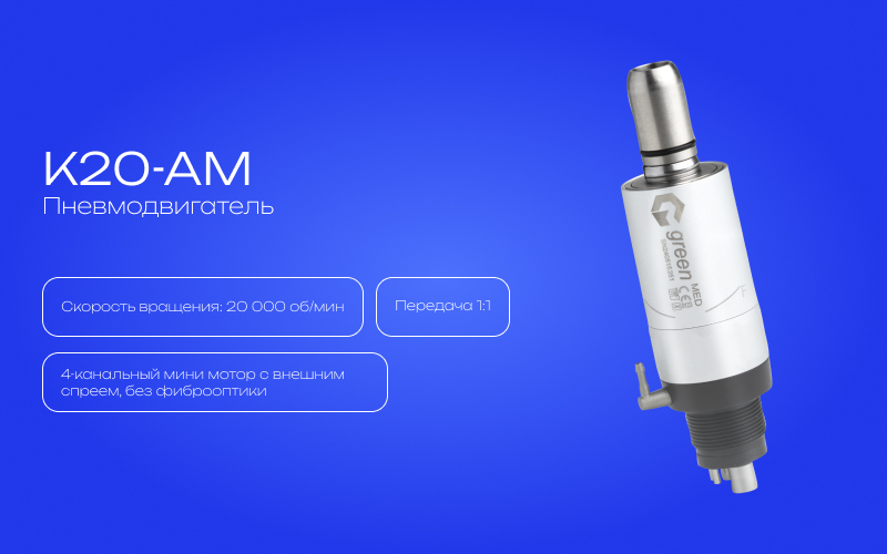 Пневматические двигатели Гринмед 1:2 обладают длительным сроком службы благодаря внутренней системе охлаждения. Она позволяет избежать перегрева и сохранить срок службы крутящего момента. Это необходимо, так как скорость вращения мотора составляет 60 000 оборотов в минуту. Её можно плавно регулировать, настраивая устройство под индивидуальные предпочтения, но это никак не повлияет на громкость работы.