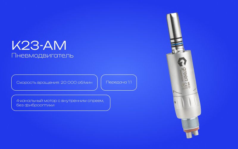 Пневматические двигатели Гринмед 1:2 обладают длительным сроком службы благодаря внутренней системе охлаждения. Она позволяет избежать перегрева и сохранить срок службы крутящего момента. Это необходимо, так как скорость вращения мотора составляет 60 000 оборотов в минуту. Её можно плавно регулировать, настраивая устройство под индивидуальные предпочтения, но это никак не повлияет на громкость работы.